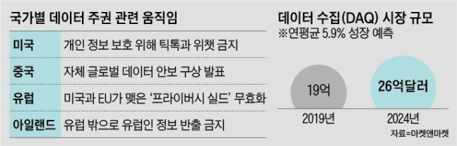 EU·미국 간 데이터 전송 협정… 유럽연합 최고 법원서 무효 판정 세계 각국이 자국민이 생성한 데이터의 해외 반출을 막는 ‘데이터 보호주의’를 강화하고 있다. 자국민이 생성한 여러 데이터가 미래 산업과 AI(인공지능)의 경쟁력을 강화하는 중요 원재료로 부상하면서다....
