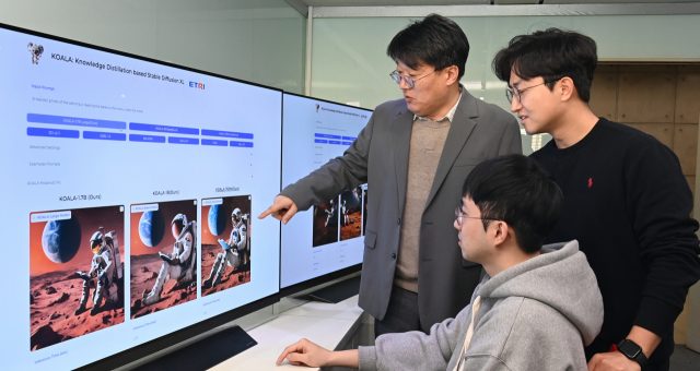 초고속 생성형 시각지능 모델 공개, 달리 대비 5배 빨라 이미지 생성 모델 3종 및 대화형 시각언어모델 2종 공개 ETRI연구진이 문장을 입력해 이미지를 만드는 코알라(KOALA) 모델을 시연하고 있다. 사진제공=ETRI [서울경제] 국내 연구진이 생성형 인공지능과 시각지능...