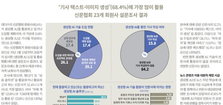 [미디어 오늘]신문협회 회원사 23개 중 19곳 “생성형 AI 활용 중이거나 도입 계획”