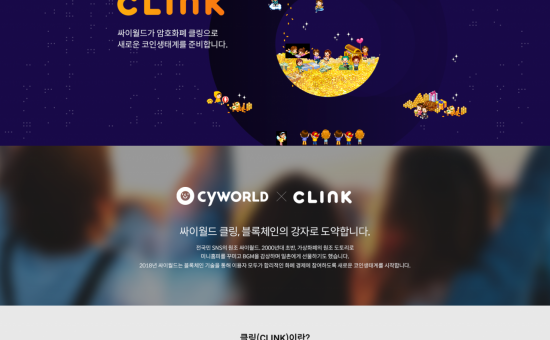 블록체인 기반 보상형 소셜 미디어 플랫폼 Cyworld 3.0 구축 CLINK(클링) ‘원조 가상화폐’ 도토리 신화를 썼던 싸이월드(대표 전제완)가 암호화폐공개(ICO)를 통해 새로운 도약을 시도한다. 싸이월드는 자체 암호화폐 ‘CLINK’을 공개함과 동시에, 블록체인 기반의 보상형 플랫폼 ‘싸이월드...
