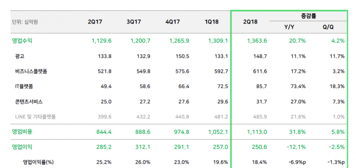 네이버는 2분기 매출 1조 3636억원, 영업이익 2506억원, 순이익 3140억원을 기록했다 네이버가 7월26일 실적발표를 통해 2018년도 2분기 실적을 공개했다. 네이버는 2018년 2분기 매출 1조 3636억원, 영업이익 2506억원, 순이익 3140억원을 각각 기록했다고 밝혔다. 영업수익은 전년동기 대비...