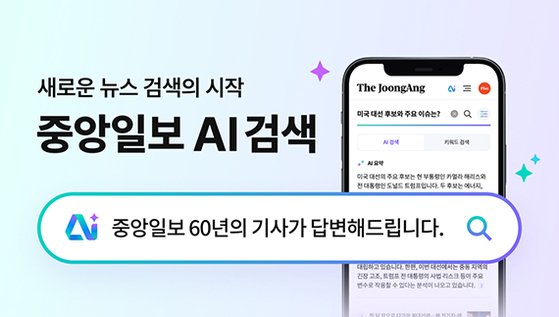 한국 언론사 최초, 차원 다른 검색 AI 뉴스 검색 중앙일보가 국내 언론사 최초로 인공지능(AI)을 활용한 새로운 뉴스 검색 서비스를 선보입니다. 지난 60년간 축적된 방대한 기사 데이터를 모두 학습시켜 신뢰도 높은 검색 결과를 제공합니다....