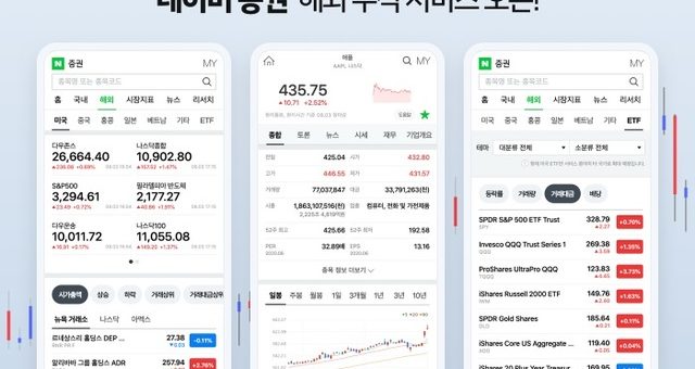 (출처: 네이버) [서울=뉴시스] 이진영 기자 = 네이버 증권은 모바일로 ‘해외종목’ 주식 정보 서비스를 시작한다고 11일 밝혔다. 이번에 모바일로 선보이는 해외종목 서비스는 미국과 중국, 일본, 홍콩, 베트남 5개국의 주요 지수와 2만2000여개 종목에 대한 기업정보 및...