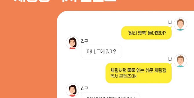 밀리 챗북, 밀리 LIVE 등 신규 콘텐츠 출시 전자책 독서 앱 서비스 ‘밀리의 서재’는 채팅과 생방송으로 독서를 하는 신규 콘텐츠 ‘밀리 챗북’과 ‘밀리 LIVE’을 13일 출시했다. 밀리 챗북은 채팅하듯이 말풍선으로 읽는 형태이고, 밀리 LIVE는...