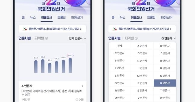 네이버 총선 특별페이지 7일 개설 22대 국회의원 선거를 앞두고 네이버가 총선 특별페이지를 통해 지역언론의 총선 뉴스를 골라 볼 수 있게 했다. 네이버는 7일 총선 특별페이지를 공개했다. 특별페이지는 선거 관련 기사 모음, 여론조사 기사...