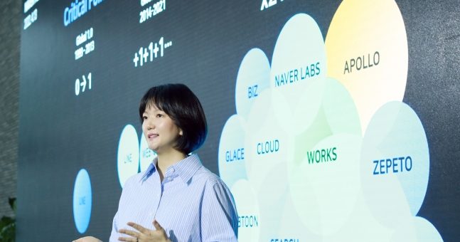 네이버 “버티컬 서비스로 모이는 차세대 커뮤니티 계획” 카카오 “관심사 기반 오픈채팅으로 비(非)지인 연결할 것” 최수연 네이버 대표가 지난 4월13일 오전 경기도 성남시 분당 네이버 제2사옥 ‘1784‘에서 열린 ‘네이버 밋업'(NAVER Meetup) 행사에서 글로벌 비전을 설명하고 있는...