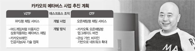 카카오 신임 대표 기자간담회 텍스트 콘텐츠 중심 서비스 개발 V2TF·OTF 양갈래 축 삼아 준비 “중앙집권 방식으로 시너지 발휘” [서울경제] “카카오(035720)만의 강점을 살린 메타버스로 ‘비욘드 코리아’ ‘비욘드 모바일’을 증명하겠습니다.” 남궁훈(사진) 카카오 신임 대표 내정자는 24일 열린 기자...