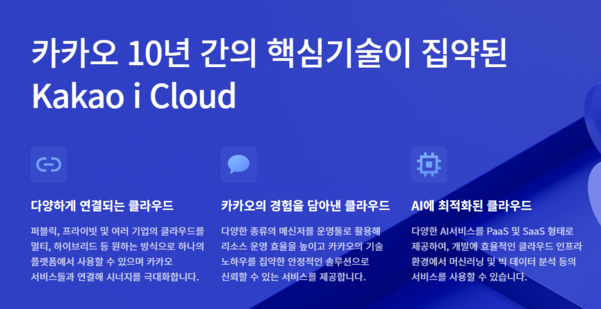 지난 1일 ‘카카오 i클라우드’ 홈페이지 개설 “10년의 데이터 구축·운영 노하우 집약” 카카오가 클라우드 시장에 본격적으로 뛰어든다. 카카오는 ‘카카오 i클라우드’ 홈페이지를 지난 1일 개설하고 클라우드 시장에 첫발을 내디뎠다고 2일 알렸다. 네이버처럼 데이터센터 없이 당분간 타사...