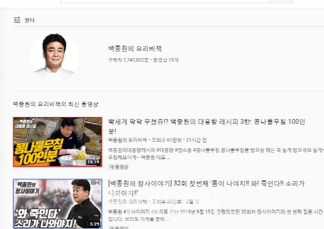 요리 유튜버들, 백 대표 등장에 ‘착잡’ ‘부럽다’ ‘환영’ 여러 마음 [이데일리 김유성 기자] ‘부럽다.’ 한 요리 유튜버가 백종원의 유튜브 채널 ‘요리비책’을 보면서 든 심정입니다. 겉으로는 ‘요리 유튜브 시장이 넓어질 것’이라고는 생각한다고 말합니다. 백종원이라는 국내 외식업계...