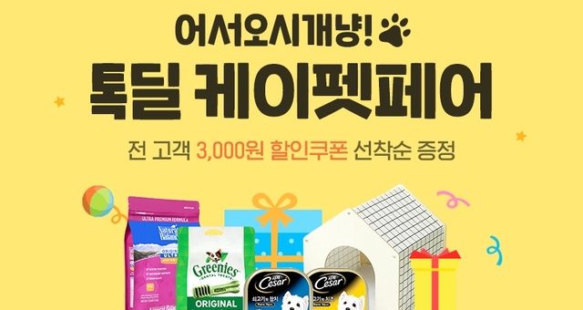 [서울=뉴시스] 이진영 기자 = 카카오톡 쇼핑하기가 30일부터 6월 2일까지 4일간 오프라인 박람회 전문업체 ‘메쎄이상’과 손잡고 ‘톡딜 케이펫 페어’를 진행한다고 밝혔다. 톡딜 케이펫 페어는 기존 오프라인 박람회를 통해 진행되던 행사를 온라인 페어 형태로 선보이는 행사로,...