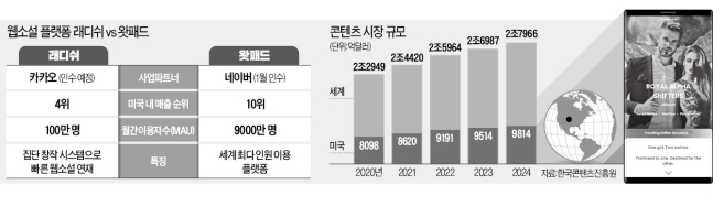 카카오, 美 웹소설 업체 인수 美시장 장악한 네이버와 ‘전쟁’ 웹툰·영화·드라마·게임… 콘텐츠 지재권 천문학적 가치 네이버 ‘스위트홈’·카카오 ‘승리호’ 넷플릭스에 공개…줄줄이 히트 글로벌 웹소설 플랫폼 래디쉬에 관심을 보인 건 카카오만이 아니었다. 대형 글로벌 벤처캐피털(VC)...