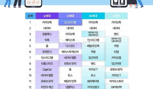 [디지털데일리 이나연 기자] NHN데이터가 안드로이드 이용자 약 2800만명 앱 설치 빅데이터를 분석한 결과, Z세대(1990년대 중반에서 2000년대 초반에 걸쳐 태어난 세대)는 인스타그램을 가장 많이 이용하는 것으로 나타났다. 반면 알파(α)세대와 밀레니얼(M)세대, 엑스(X)세대에서는 카카오톡이 설치 앱 1위를...
