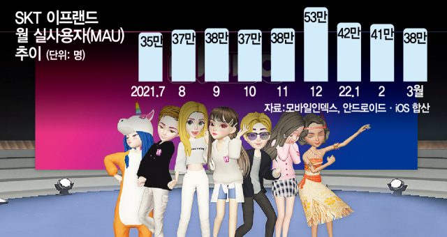 AI·NFT 연계 ‘SKT 2.0′ 중추 역할 출시 10개월 차에 이용자 제자리 올해 들어선 매달 감소세 이어져 제페토와 글로벌 경쟁 ‘먹구름’ SK스퀘어 투자사업에도 악영향 [서울경제] SK텔레콤이 미래 신사업으로 삼은 메타버스 플랫폼 ‘이프랜드(ifland)’가 사업 확장에 어려움을...