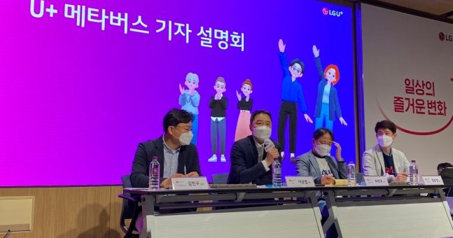 직장인·키즈 특화 서비스로 기존 메타버스 서비스와 차별화 통신사 최초 NFT 커뮤니티 시장 진출도 LG유플러스가 17일 오전 메타버스 관련 기자간담회를 열고 직장인·키즈 특화 서비스와 NFT 커뮤니티 시장 진출을 발표했다. (왼쪽부터) LG유플러스 이상엽 CTO(전무), 최창국 차세대기술랩장(상무),...