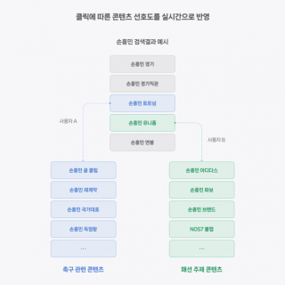 네이버, ‘서치피드’에 개인화 콘텐츠 제공 이용자 관심사에 따라 다른 결과 구글과 점유율 격차 22%p 불과 유튜브는 카페24와 손잡고 커머스로 확대 네이버 통합 검색 결과 하단에 표시되는 ‘서치피드’ 내 스포츠·연예 콘텐츠 개인화 예시. 네이버 제공...