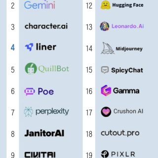 한국 스타트업의 생성형 AI(인공지능) 서비스 ‘라이너’가 세계 최대 규모 벤처캐피털(VC)이 선정한 생성형 AI 순위에서 4위에 올랐다. 그래픽=조선디자인랩 김영재 19일(현지 시각) 미국 실리콘밸리의 벤처캐피털 엔드리슨 호로위츠가 발표한 세계 생성형 AI 웹서비스 사용량 순위에 따르면, 라이너는 오픈AI의 챗GPT, 구글의 제미나이, 캐릭터닷AI에...