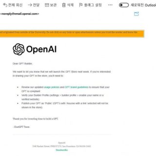 오픈AI, 공식 발표…챗봇 개발자 수익 배분 등은 불명확 오픈AI가 다음 주 챗봇을 사고팔 수 있는 ‘GPT스토어’를 출시한다. 4일(현지시간) 오픈AI는 “GPT스토어가 다음 주 나온다. 챗GPT 사용 규정과 브랜드 가이드라인을 다시 한번 확인 바란다”는 내용을 담은 이메일을 사용자들에게...