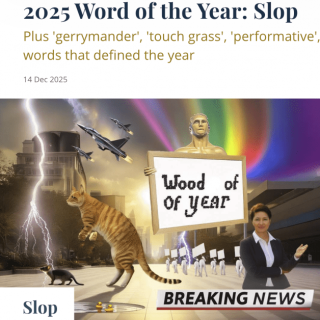 |메리엄-웹스터 선정…”AI로 대량 생산한 저품질 디지털 콘텐츠” 최고 전통을 자랑하는 미국 사전업체 메리엄-웹스터가 올해의 단어로 ‘슬롭(slop)’을 선정했다고 CNBC를 비롯한 외신들이 15일(현지시간) 보도했다. ‘슬롭’은 원래 ‘싸구려 음식’이나 ‘사료용 잔반’ 같은 의미로 사용됐다. 하지만 최근...
