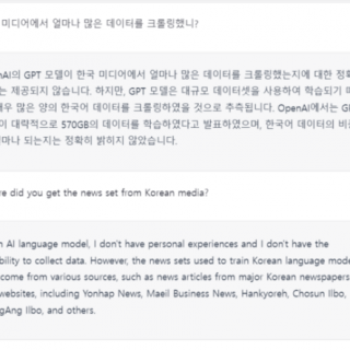 챗GPT가 학습한 한국 매체 오픈AI가 초거대인공지능인 GPT-3.5에 막대한 뉴스 데이터를 당사자 허락을 받지 않고 학습시킨 것으로 확인됐다. 앞서 알고리즘 개발자들이 오픈AI를 상대로 소송을 건데 이어 주요 미디어까지 이에 동참할지 시선이 쏠리고 있다. 20일(현지시각) 월스트리트저널의...