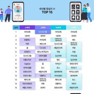 [디지털데일리 이나연 기자] NHN데이터가 안드로이드 이용자 약 2800만명 앱 설치 빅데이터를 분석한 결과, Z세대(1990년대 중반에서 2000년대 초반에 걸쳐 태어난 세대)는 인스타그램을 가장 많이 이용하는 것으로 나타났다. 반면 알파(α)세대와 밀레니얼(M)세대, 엑스(X)세대에서는 카카오톡이 설치 앱 1위를...