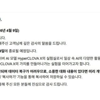 클로바X, 4월 서비스 종료 수익성 고려한 결정인 듯 쇼핑 AI 에이전트에 집중 (‘클로바 X’ 공지사항 갈무리) 네이버의 인공지능(AI) 사업 전략이 바뀌고 있다. 제미나이·챗GPT와 같은 대화형 AI 서비스를 내놓는 대신 쇼핑 AI 에이전트(비서)와 같은 수익성 모델을 강화하는 쪽으로 사업 방향을 전환한...