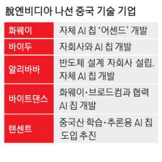 美규제가 자극한 中기술자립 엔비디아 의존도줄이기 안간힘 알리바바 칩 자체 개발 소식에 美반도체기술주 3% 안팎 하락 중국이 인공지능(AI) 반도체 자립을 본격화하고 있다. 알리바바의 AI 칩 자체 개발에 이어 딥시크의 화웨이 칩 도입 결정까지 이어지면서 중국이 미국 중심의 AI 생태계...