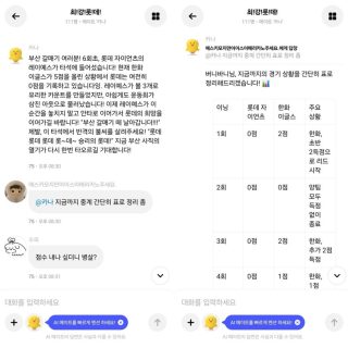 12일 프로야구 ‘편파중계’ 그룹방 테스트 개시…선착순 100명만 롯데·한화 경기 생중계부터 득점 요약·응원가·역전 가능성 분석 카나나의 프로야구 ‘편파중계’ 그룹방 ‘최강롯데’ 대화 내용 (카나나 애플리케이션(앱) 갈무리) (서울=뉴스1) 신은빈 기자 = 카카오(035720)의 인공지능(AI) 에이전트 서비스...