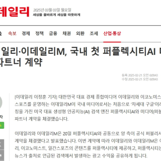 글로벌 AI 기업과 협업 눈길 이데일리와 매경미디어그룹이 최근 차세대 구글로 평가받는 미국 인공지능(AI) 기업 퍼플렉시티와 ‘광고수익 공유’, ‘AI 검색 도입’ 등을 골자로 파트너십을 체결했다. 글로벌 AI 기업과 국내 언론 간 본격 협업의 서막이...