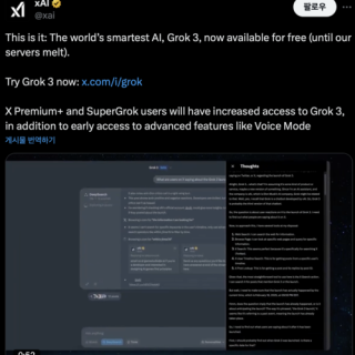 2월 나온 일론 머스크의 ‘그록3’ 무료화 오픈AI는 무료 이용자에 ‘음성 모드’ 지원 시작 “GPT-5부터는 기본 지능 무제한 이용” 예고도 서비스 경쟁 격화되며 이용자 선점 목적 MS·구글은 코딩용 무료 툴 통해 개발자 확보 최신 AI 모델인 ‘그록3’를...
