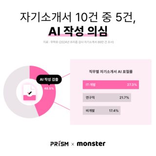 취준생은 AI로 뚫고, 기업은 AI로 거른다 채용시장 자기소개서 48.5% AI 이용 의심 기업은 AI 기반 서류 검증 시스템 도입 확산 무하유 제공 생성형 AI가 취업 시장의 판도를 바꾸고 있다. 지원자들은 자기소개서 작성은 물론, 면접...