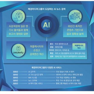 매경 홈페이지에 ‘AI 검색창’ 60년 축적 매경 데이터 활용해 보고서 형태로 검색 결과 제공 AI가 ‘관련 질문’까지 추천도 PC용 시험버전부터 서비스 매경 손잡은 퍼플렉시티는 오픈AI 출신이 2022년에 설립 창업 21개월 만에 유니콘 등극 구글 아성 도전하는 ‘다크호스’...