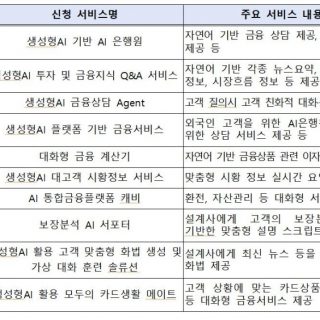 앞으로 금융사들이 생성형 인공지능(AI)에 기반한 금융상담 등 서비스 제공을 본격화할 전망이다. 금융위원회는 지난달 27일 정례회의에서 생성형 AI를 활용한 9개 금융회사의 10개 서비스를 혁신금융서비스로 신규 지정했다고 9일 밝혔다. 금융당국이 지난 8월 발표한 금융 분야 망분리 개선...