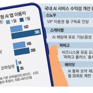 생성형 AI 이용자 늘면서 차별화 편의 기능 탑재한 수익형 구독 모델 대세로 오픈AI, 챗GPT 인상 계획 국내 스노우·파파고도 구독료 올리고 요금제 신설 인공지능(AI) 채팅 ‘이루다’로 유명한 스캐터랩의 콘텐츠 플랫폼 제타. 제타에서는 AI 기반 캐릭터들과...