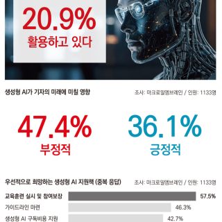 현직 기자 10명 중 2명은 이미 생성형 AI를 업무에 활용하고 있는 것으로 나타났다. 기자협회보 여론조사에 따르면 ‘생성형 AI를 취재와 보도, 제작 과정에서 얼마나 활용하고 있나’란 질문에 ‘활용하는 편이다’(15.9%), ‘자주 활용한다’(5.0%)라고 답한 경우가 20.9%였다. ‘거의...